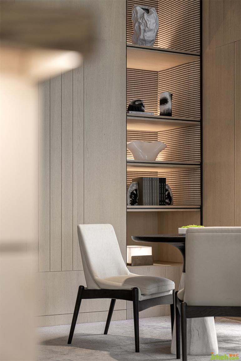 天地之下?lián)頂埲f物,雕塑以柔美的弧形與干凈的線條切割,優(yōu)美而適度的光影變化與室外自然的對應(yīng)創(chuàng)建時空對話,深圳營銷中心設(shè)計形成空間另一記憶點,彰顯居者獨特個性與品味,室內(nèi)設(shè)計師致敬自然的魅力無限。