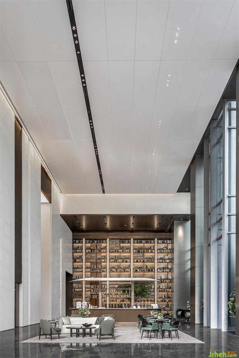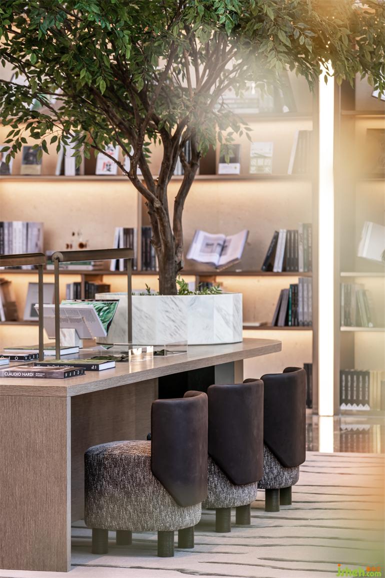 生活的多面性,讓洽談空間攬括了動靜皆宜的屬性。室內(nèi)設(shè)計師大面積的書架獨自成墻,讓建筑空間的靈感接觸城市閱讀的天際線,以文化脈動解讀生活,回歸理想時代。