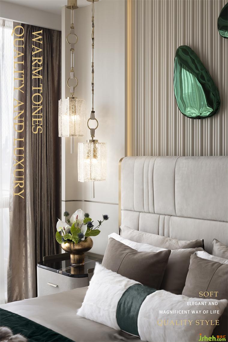 主臥以進(jìn)口品牌CORNELIO CAPPELLINI床搭配GAMMA床頭柜獨(dú)有的奢華氣質(zhì)與姿態(tài)縱觀居者的生活態(tài)度,當(dāng)生命的延展性在細(xì)節(jié)中呈現(xiàn),而那些感情就雕刻在細(xì)枝末節(jié)之中,在雙色層疊中構(gòu)筑品奢質(zhì)美,傳遞精致、典雅瑰麗的生活方式。