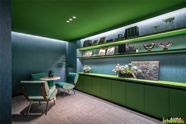 頭腦風暴需要愜意的放松的場域,綠色的清新最能釋放人的壓力,仿若置身大自然之中,創(chuàng)意應運而生。人在室內(nèi)的流動、停歇、行走,將空間與人的交互相鏈接蔓延,緩緩流淌。