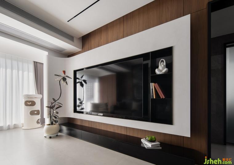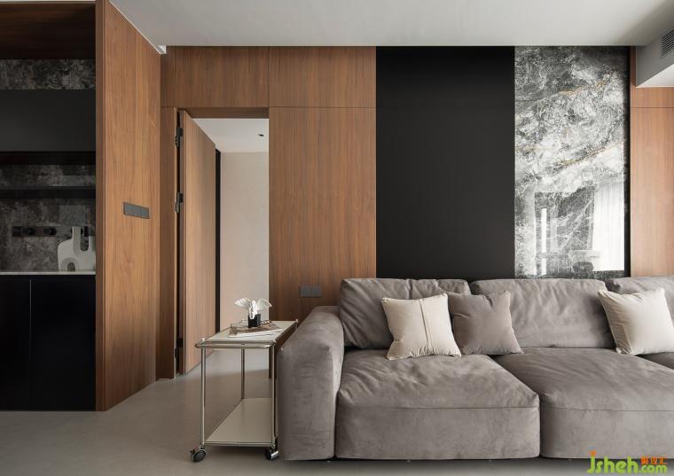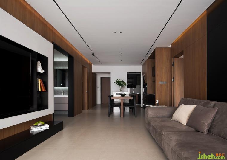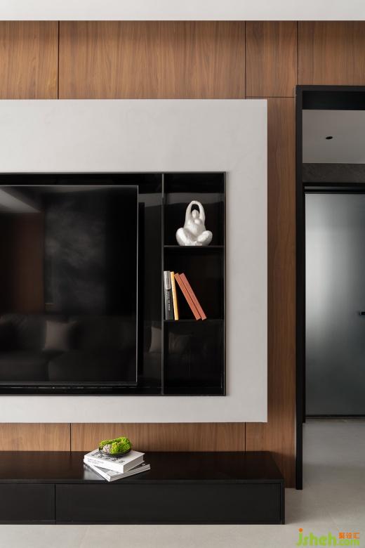 冰箱一直是比較難歸置的大物件,融合了空間的結(jié)構(gòu)在呈現(xiàn)胡桃木的溫馨也將冰箱嵌入其中。