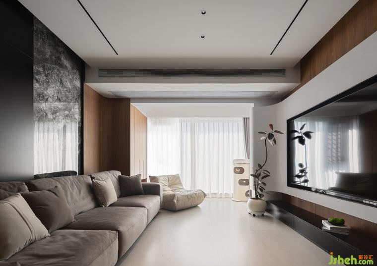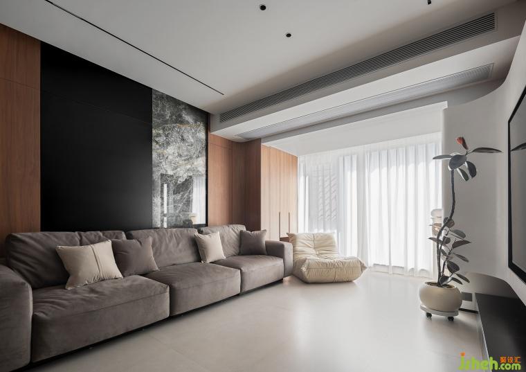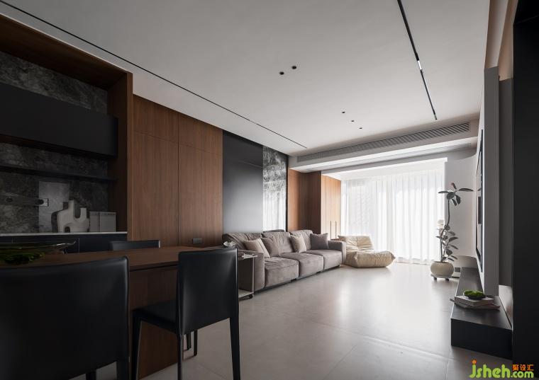 這是一個深沉的木質(zhì)感直接入住電影感的家,家裝設(shè)計通過色彩的搭配和陳設(shè)以及木色飾面,讓整個空間都散發(fā)濃郁的現(xiàn)代胡桃木氣質(zhì)。大面積的落地窗,讓自然光線和微風(fēng)形成對流,自然延伸至家中的每一個角落。