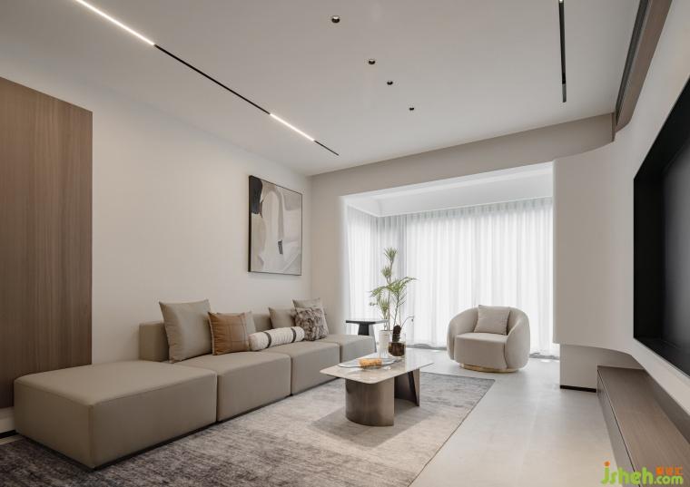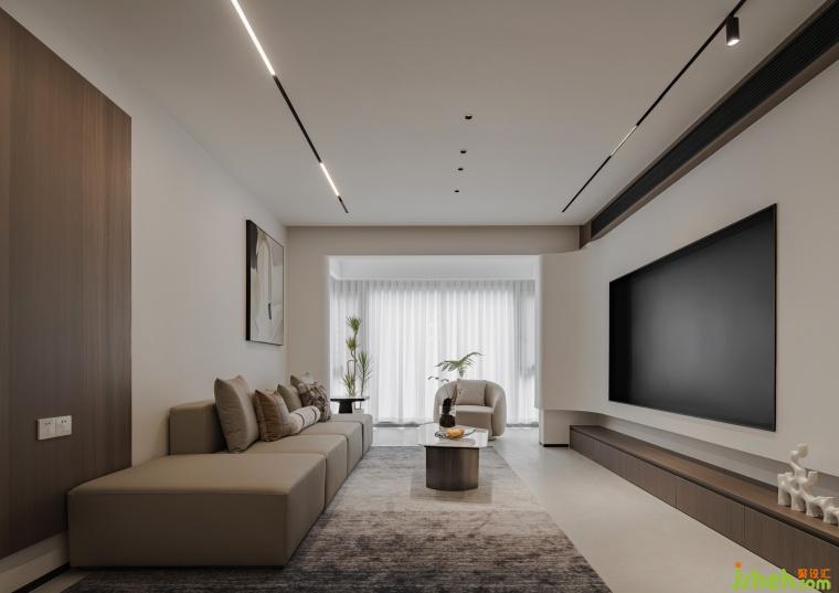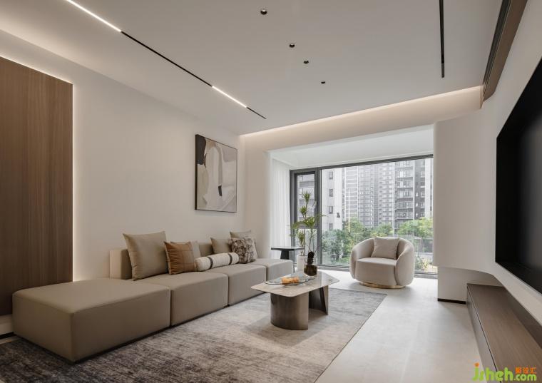 這是一套空間寬裕的平層式住宅,我們從觀景采光、通風邏輯、結構表達三個方面,進行空間規(guī)劃。結合房子本身的優(yōu)勢,以及房屋劣勢,打磨出了一體化設計。