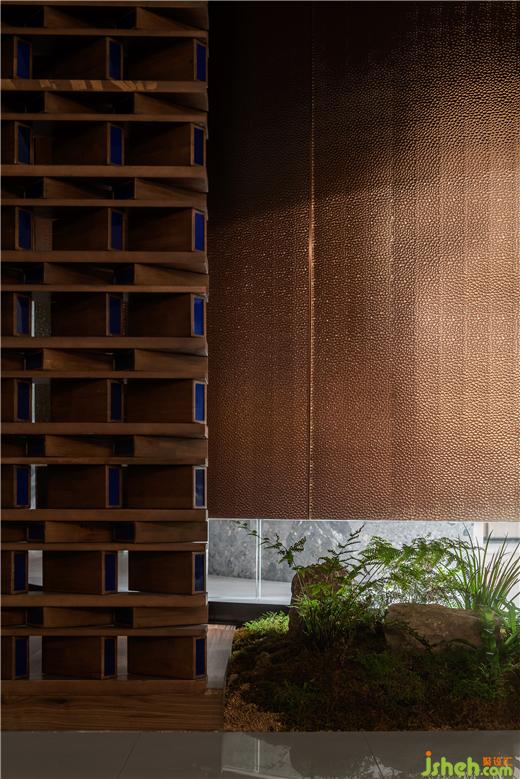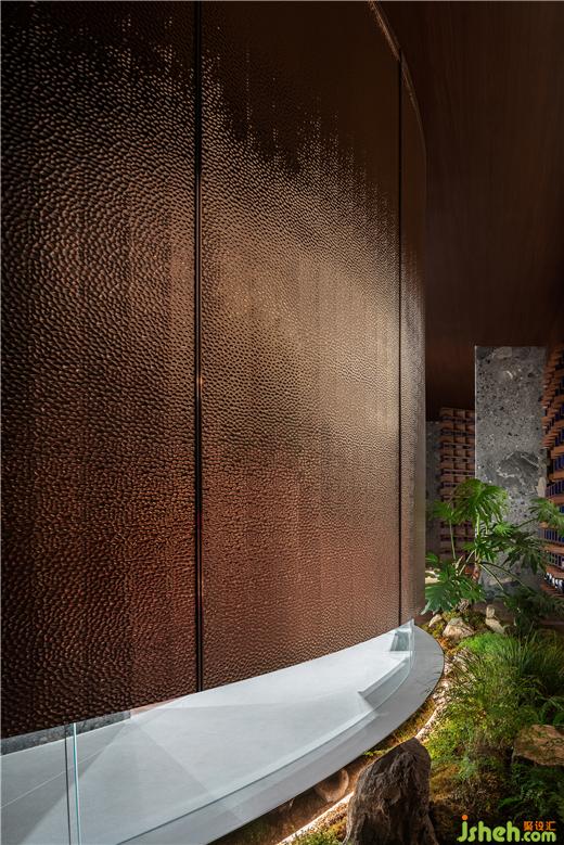 樹木有兩種形態(tài),曲與直,曲對應圓,而直對應方,展廳設計通過兩組對應關系實現形態(tài)與肌理的結合。立足產品以“木”為本,輔以其他材質,在細節(jié)上投射出原木本質:來與自然,記錄年輪,蘊蓄時光。