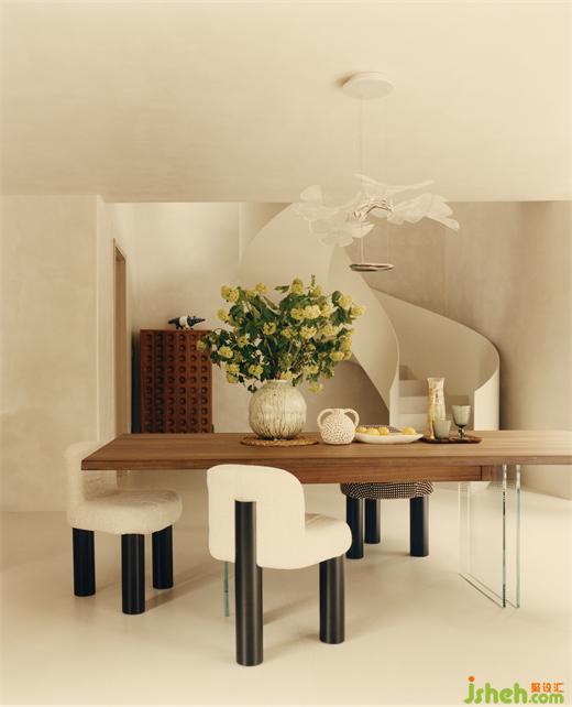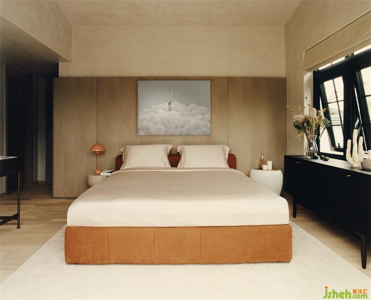 度合一衡在空間上并沒有進(jìn)行過度的裝飾手法,沒有做過多的硬裝材質(zhì)堆砌,只是被大面積暖白自然肌理感的涂料包裹,讓空間有了一種經(jīng)得住時間的考驗的雋永。沒有以任何一種標(biāo)簽化的設(shè)計風(fēng)格為起點(diǎn),而是挖掘出獨(dú)屬于業(yè)主個性的第二居所的精神所在。相對于業(yè)主上一套住宅中克制與嚴(yán)謹(jǐn),在這里,設(shè)計師試圖幫他們卸下規(guī)訓(xùn)與責(zé)任外,回歸那個內(nèi)心熱愛藝術(shù)與生活的自己。