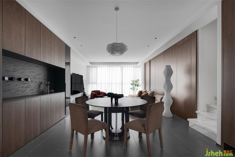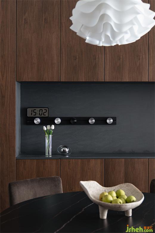 餐邊柜那溫潤(rùn)的木和利落的線條協(xié)調(diào)統(tǒng)一了客餐廳的氛圍,讓精致的生活融入空間的每個(gè)角落。