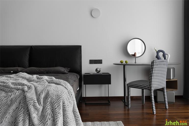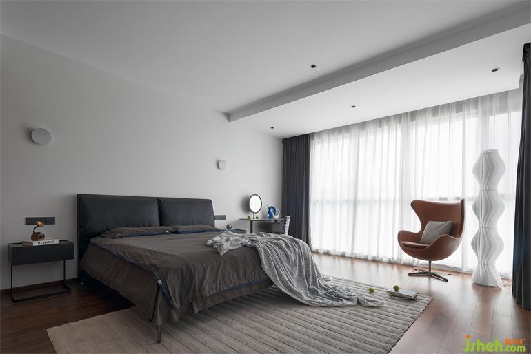 臥室延用了客餐廳的設計格調(diào),度設計增加了更多的木飾面帶給居室更多的親切感與溫馨。