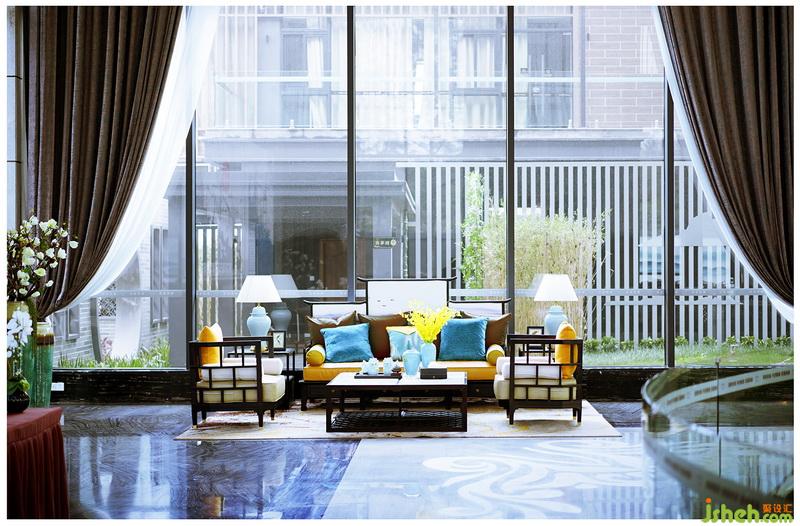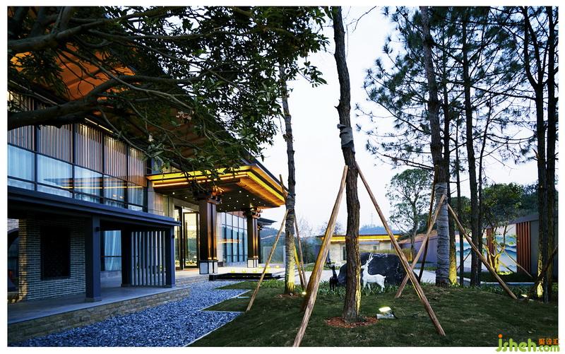 本項目通過對傳統(tǒng)中式庭院的深入研究,結(jié)合現(xiàn)代手法提煉造型元素,同時注入休閑元素調(diào)和中式建筑的嚴肅氛圍。利用大面積落地玻璃,銷售大廳將周邊山水風(fēng)光收入眼簾,最天然的帷幕,最緊密的交互,山林湖泊,蟲鳴鳥叫,將是生活的一部分。