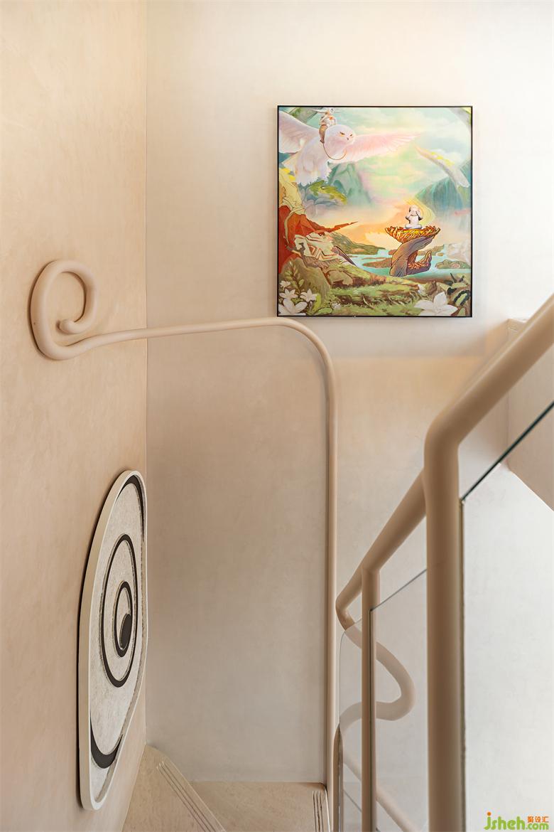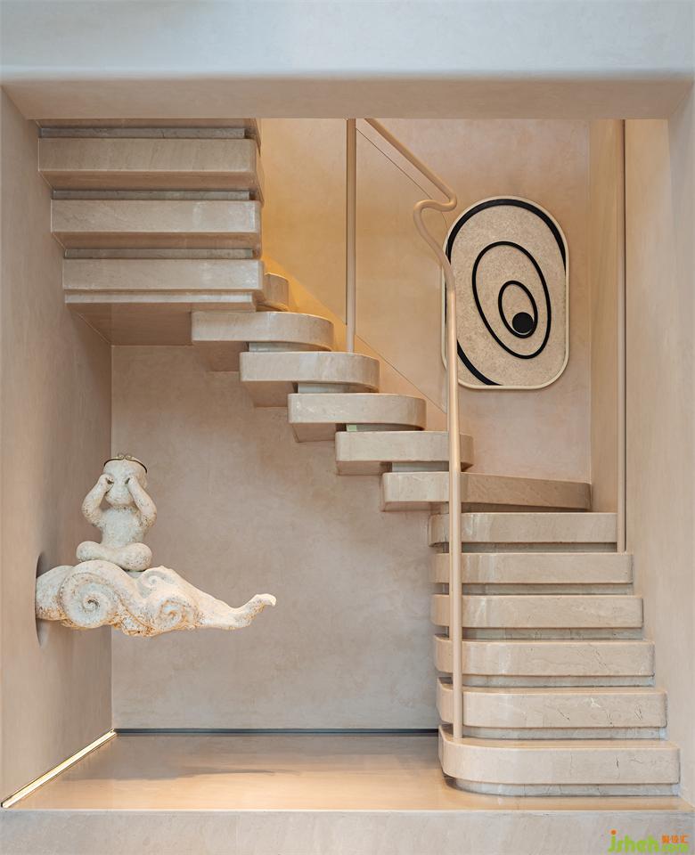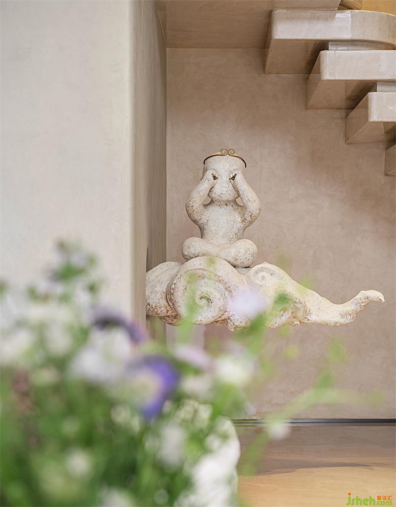 駕著祥云的悟空寓意著追夢(mèng)、不忘初心。過(guò)道的“眼睛”裝置掛飾,重慶樣板間設(shè)計(jì)形態(tài)流轉(zhuǎn)靈動(dòng),調(diào)動(dòng)著觀者的情緒,更是建筑與人互動(dòng)的媒介。
