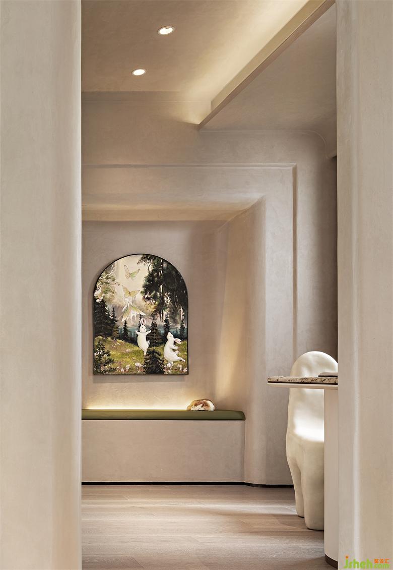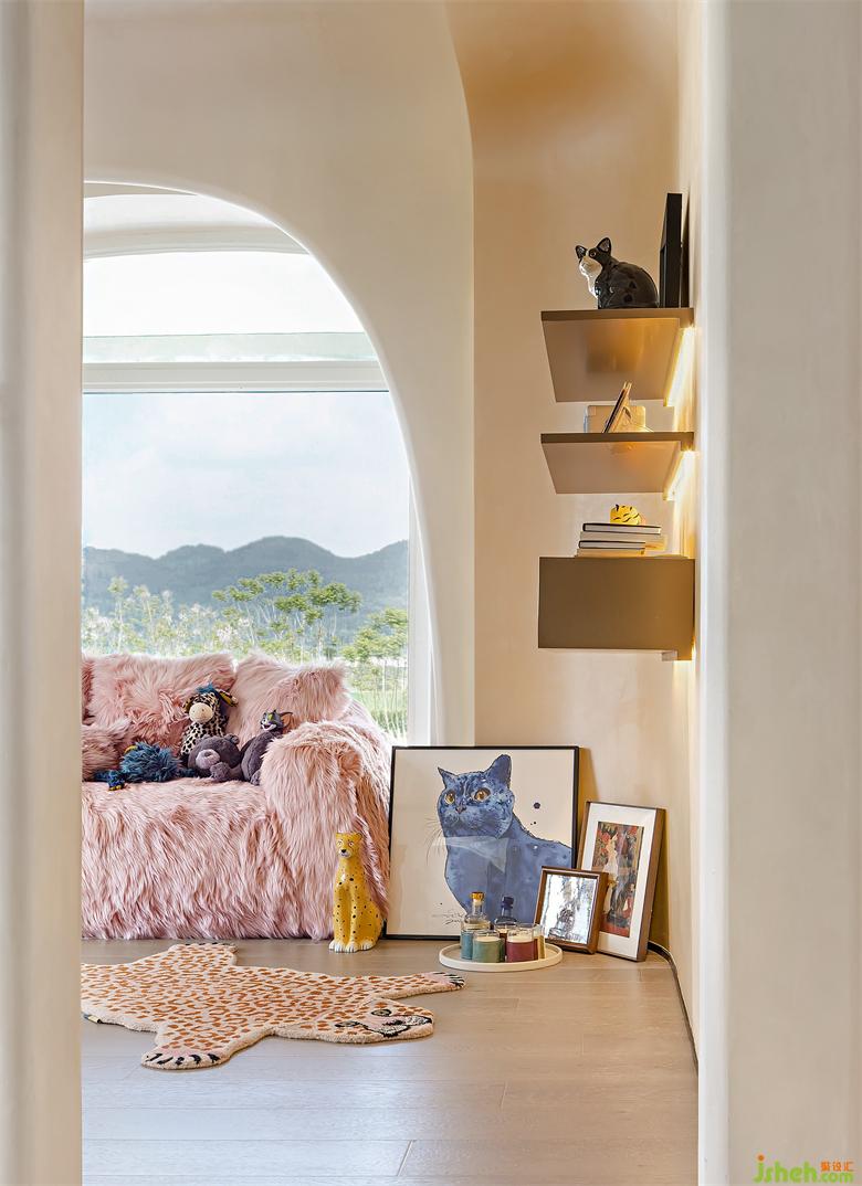 溫暖的氛圍環(huán)繞著工作室的每個(gè)角落,采用本土設(shè)計(jì)品牌kar-studio單椅,重慶樣板間設(shè)計(jì)充滿了拙美的氛圍,邊緣不設(shè)棱角,溫柔蜿蜒而成,極具雕塑感。結(jié)合高難度的制作工藝和材料選擇,最終呈現(xiàn)出像石頭一樣的柔軟質(zhì)感,能充分地讓人感到安靜的力量。