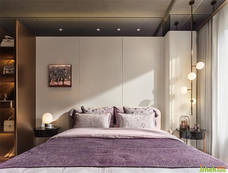 重慶樣板間設(shè)計(jì)床頭柜以深棕作為點(diǎn)綴,有助于營(yíng)造安靜沉穩(wěn)的空間基調(diào)。感受到優(yōu)雅與溫馨的同時(shí),在安全感的包裹中感知自己。