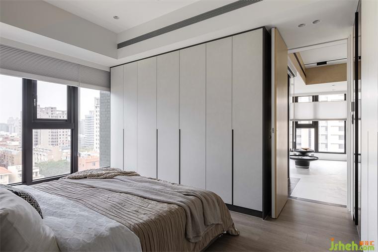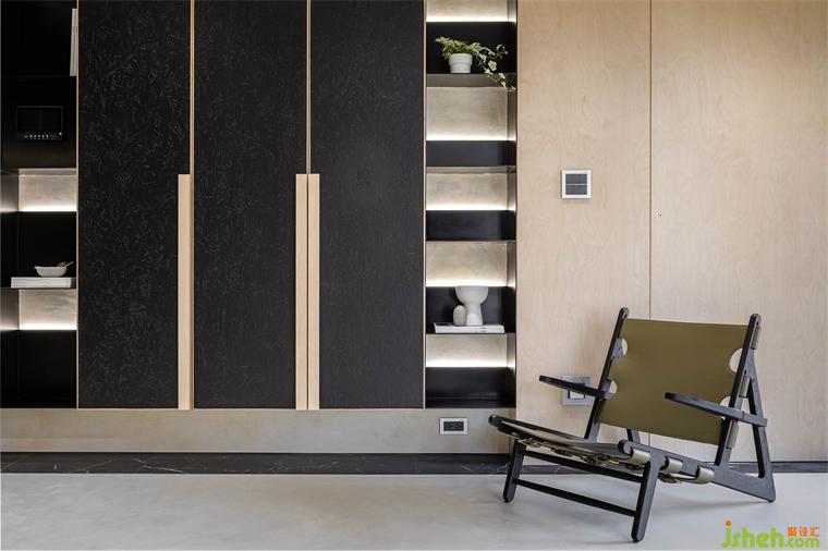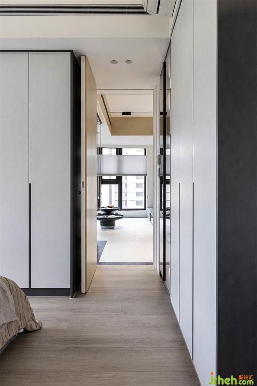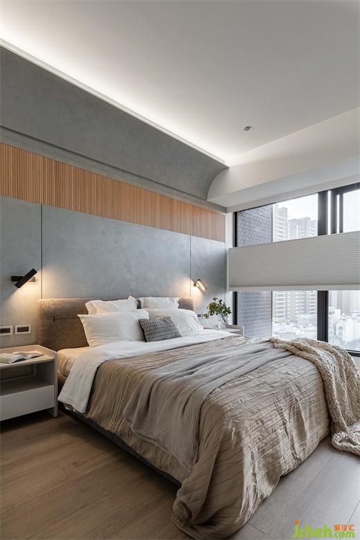 睡眠使用的私領(lǐng)域,材質(zhì)色系上延伸公領(lǐng)域的休閑感,不同的是天花在線條上以弧型的設(shè)計搭配間接照明,讓空間柔化并且充分可以得到充分的放松。