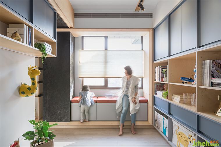 屋主是一對注重與孩子建立親密親子關(guān)系的夫妻,在計(jì)劃要生第二胎,換大一點(diǎn)的房子的決定之下,希望以純凈北歐氛圍做主要新屋的風(fēng)格設(shè)定,寬敞的坪數(shù)加上大片窗戶,采光為此屋的優(yōu)勢。利用北歐的清爽色系為基本,豪宅設(shè)計(jì)使用樺木框起大片落地窗,由客廳過度到后方小孩房,形成一幅大型窗景,兼具多重的功能,從孩子的身高為考量點(diǎn),架高的木窗框成為孩子隨坐隨玩的平臺,延伸至游戲房的當(dāng)中也設(shè)有可以展示孩子手作品或相框的層板,木框進(jìn)入游戲房之后,即是柔軟的窗臺座位區(qū),鼓勵孩子找個舒適的角落作閱讀。