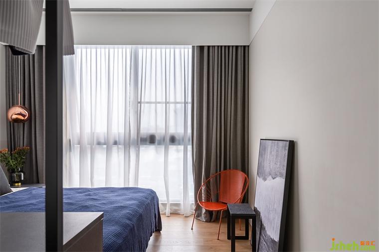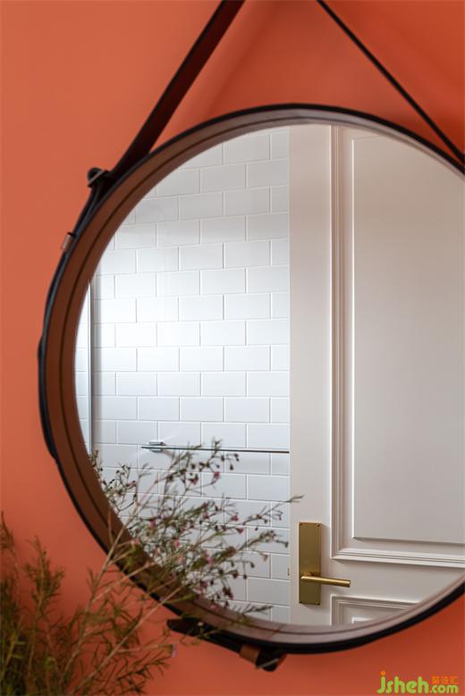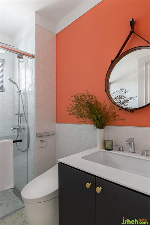 客浴大膽使用珊瑚橘墻面做跳色。次臥采清爽的北歐簡(jiǎn)約風(fēng)格,讓留此過夜的客人感受到男主人的熱情待客之道。