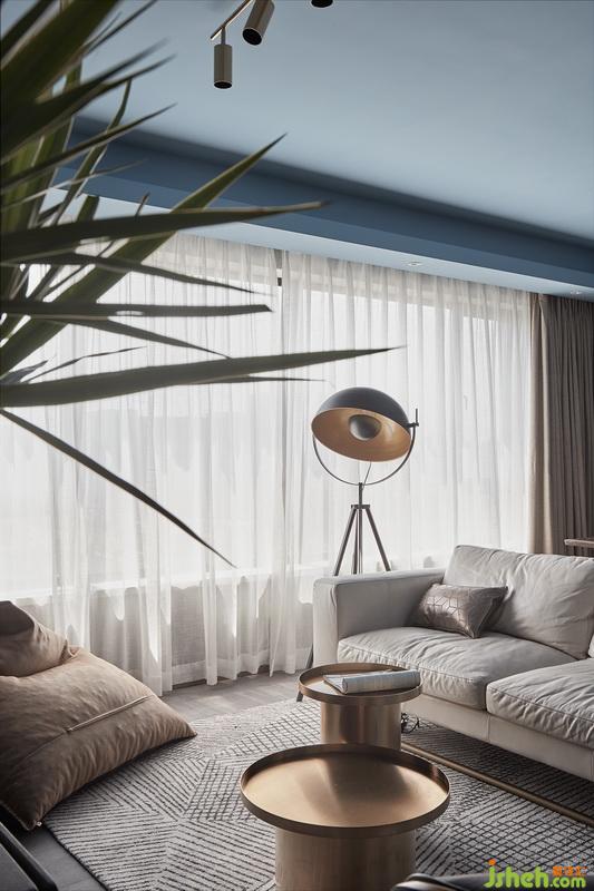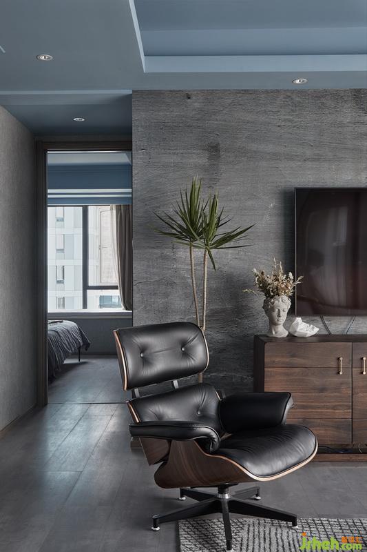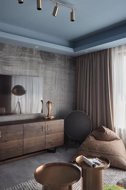 因為原有精裝修的施工和軟裝基本都是流水線化,原墻面和地面材質(zhì)遠遠達不到要求(最后拆除發(fā)現(xiàn)質(zhì)量確實很差)頂面的處理上摒棄了一貫的白色,我們在想整個空間他應該是一個完整的空間,太大的反差和生硬過度都不協(xié)調(diào),所以在頂面墻漆上選擇了灰藍色搭配墻面地面的水泥灰。
