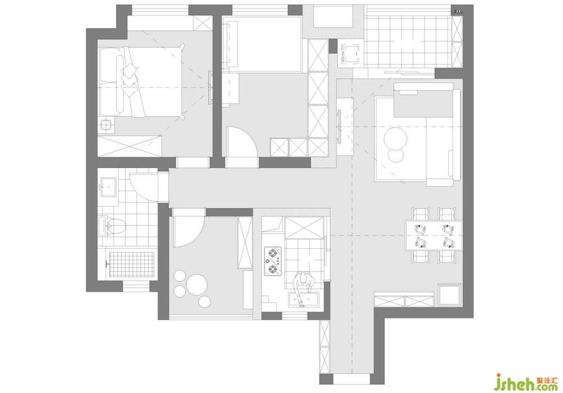 ▲次臥也并沒有放置傳統(tǒng)的家具組合,因為儲物是避不開的一個問題,我們需要他來滿足日常的收納,所以榻榻米+全屋L型的儲物柜便因此而生。