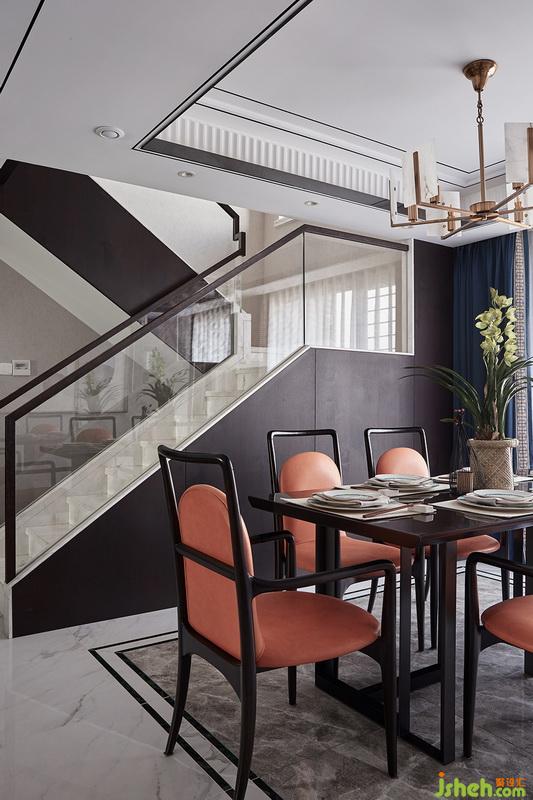 ▲垂落的白沙搭配晶透玻璃扶手,如同演繹雨滴般花語江南、突然提亮的橙色圈椅,仿佛南柯一夢(mèng),時(shí)間被靜止,舒服且愜意~