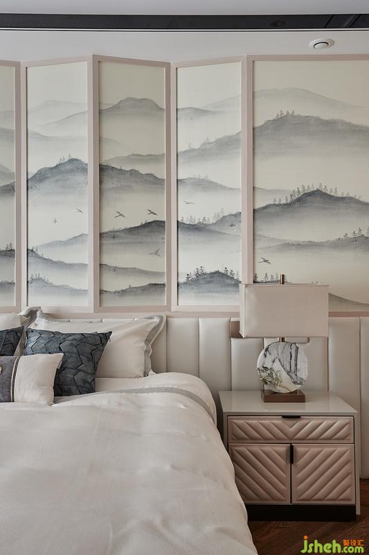 ▲父母房間的整體顏色搭配端莊穩(wěn)健的古香大地色,平靜樸素的生活態(tài)度,“斜月半窗還少睡,畫屏閑展吳山翠”在靜逸的閑暇空間,品味生活中的閑情雅致。