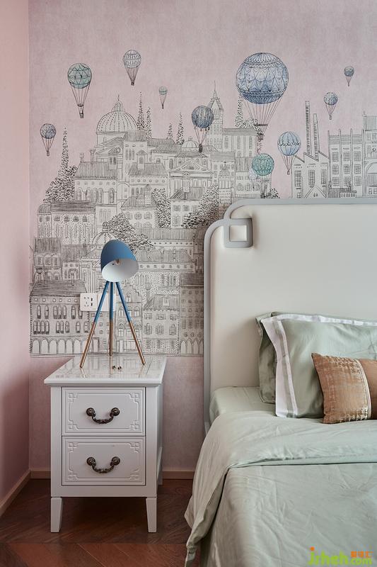 ▲業(yè)主兩個可愛的寶貝女兒,我們分別設(shè)計了兩個主題色系,煙花三月的杭州,有翠綠的孔雀綠,有粉黛的桃花粉。