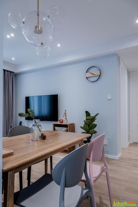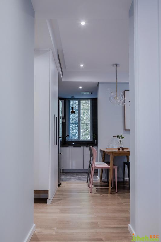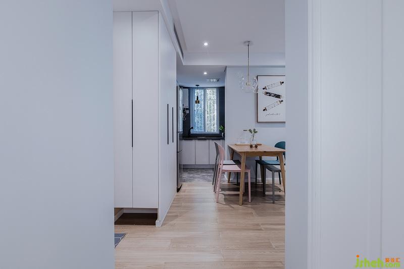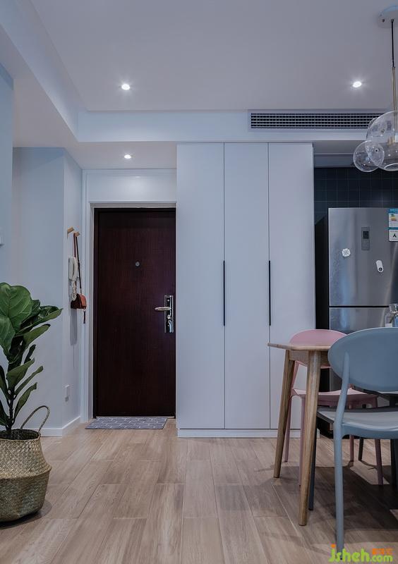 ▲小空間設計布局中,對于玄關就餐和起居室更多的應該是空間一體化,而不是碎片化設計,所以你會發(fā)現(xiàn)每一個功能他們之間并沒有很強烈的分割也不會很獨立的存在,本案中設計師采用了大量的莫蘭迪色,而非單純的原木+白墻,讓空間更具有溫度,但又避免強烈的色彩對沖。
