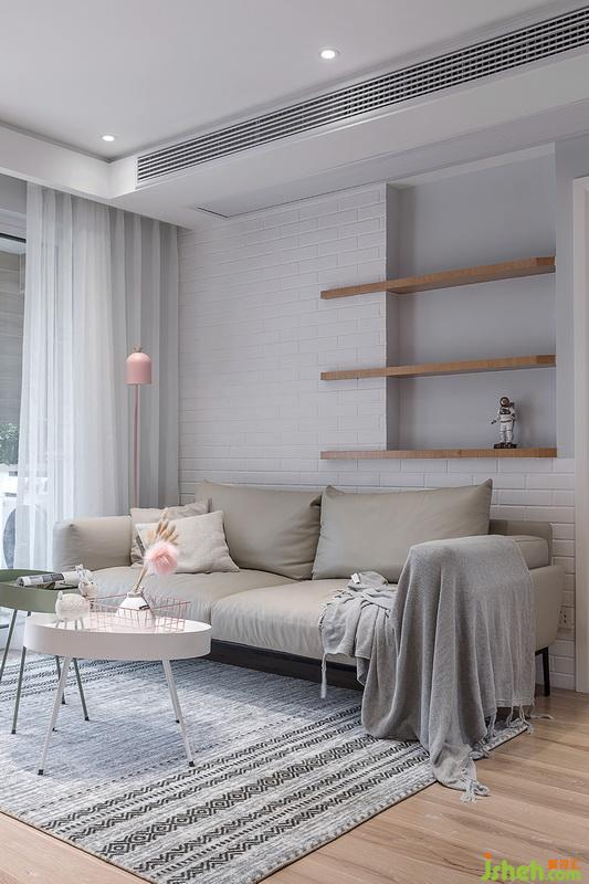 ▲封住原有的次臥門洞空間,但保留了半墻的裝飾隔墻效果,用原木色飾面搭配白色文化石背景墻,無需再刻意的陳設(shè),就能打造優(yōu)雅從容的沙發(fā)區(qū)環(huán)境,哪怕頂棚最大面積的吊頂鋪設(shè),也要在風(fēng)口面交接處做埡口的轉(zhuǎn)化,讓頂和墻面活潑起來。