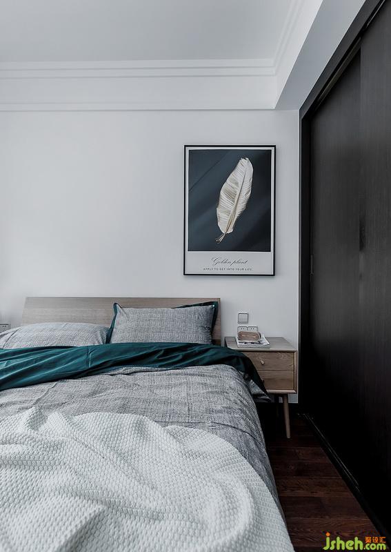 ▲次臥我們?nèi)ケ磉_這個空間的偏好,以簡約墨綠的色調(diào)搭配深色的原始柜門,張弛有度,又不會用力過猛。