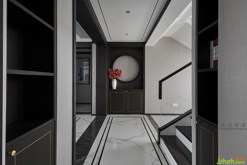 1到3層的回型樓梯設(shè)計(jì),又恰到好處毗鄰全明落地窗,讓整個(gè)室內(nèi)空間和中庭豁然開朗,鋼化超白玻璃扶手,搭配黑白相間階梯,用現(xiàn)代氣質(zhì)硬裝意境之美,讓空間顯得更通透和闊達(dá),配合整面通高柜體,猶如一幅潑墨的山水畫卷,給人飄逸的東方韻味。