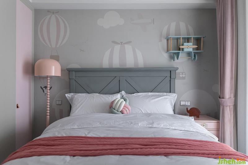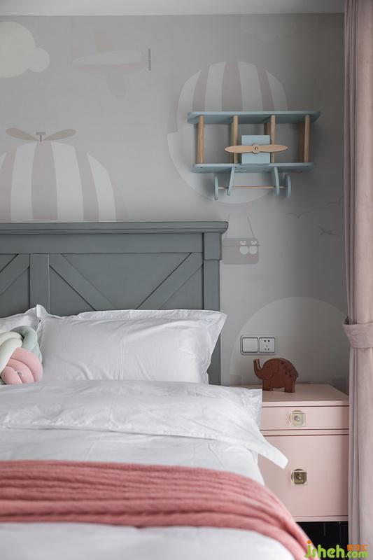 大多數(shù)女孩子天然對粉色不會有抗拒力,但是我們并不希望太過于女性化的顏色再搭配公主式的陳設,背景墻定制壁畫熱氣球+飛機模型也告訴你們,我是個女孩,但是我熱愛天空和大海,向往自由和遠方~