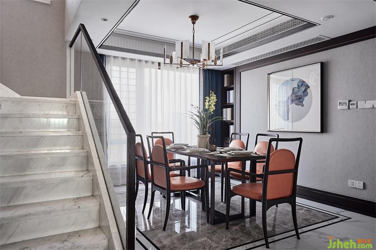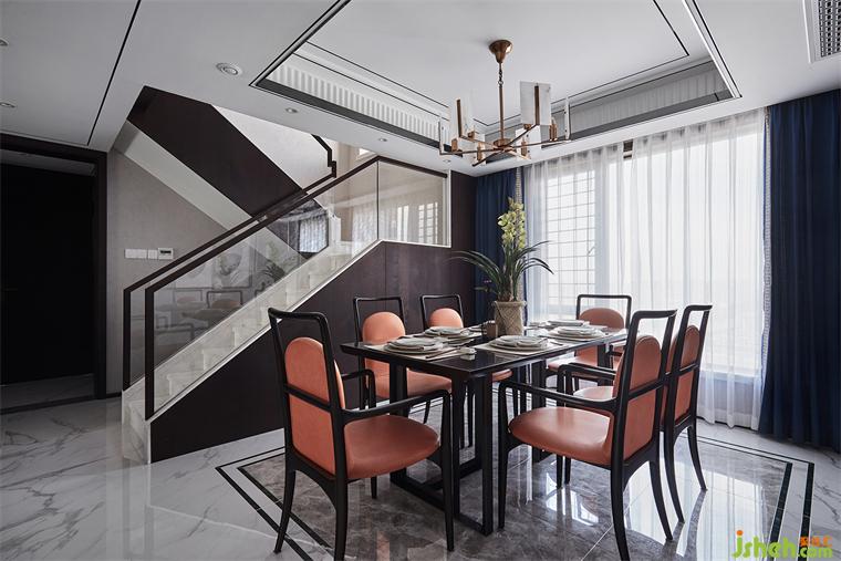 ▲垂落的白沙搭配晶透玻璃扶手,杭州金地天逸別墅設(shè)計(jì)如同演繹雨滴般花語(yǔ)江南、突然提亮的橙色圈椅,仿佛南柯一夢(mèng),時(shí)間被靜止,舒服且愜意~