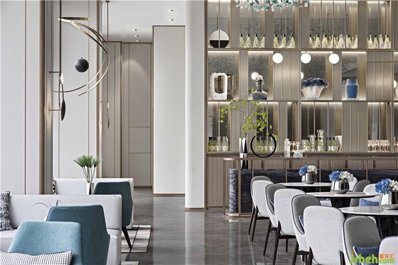 水吧區(qū)的線性元素在隨意之上,加入規(guī)律的定向性表達,使得形態(tài)的變化有跡可循,錯落有致的線條感帶給人感知上的可控和確定性,感性中體現(xiàn)著一種理性美。
