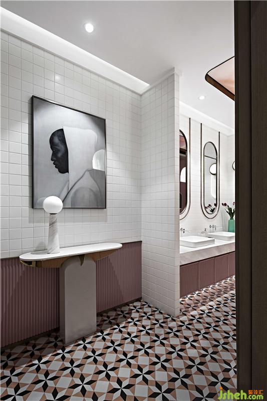 洗手間的折線運(yùn)用達(dá)至高潮,直線、曲線、幾何體...各種形態(tài)的線條共處一室,以線、面、體的綜合形式進(jìn)行空間形態(tài)的表達(dá),從平面到立體自然轉(zhuǎn)化。大面積的純色色塊制造一種強(qiáng)烈的心理震撼力,營(yíng)造張揚(yáng)有力、現(xiàn)代時(shí)尚的空間意境。