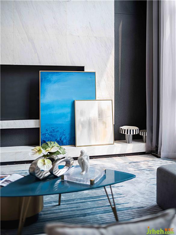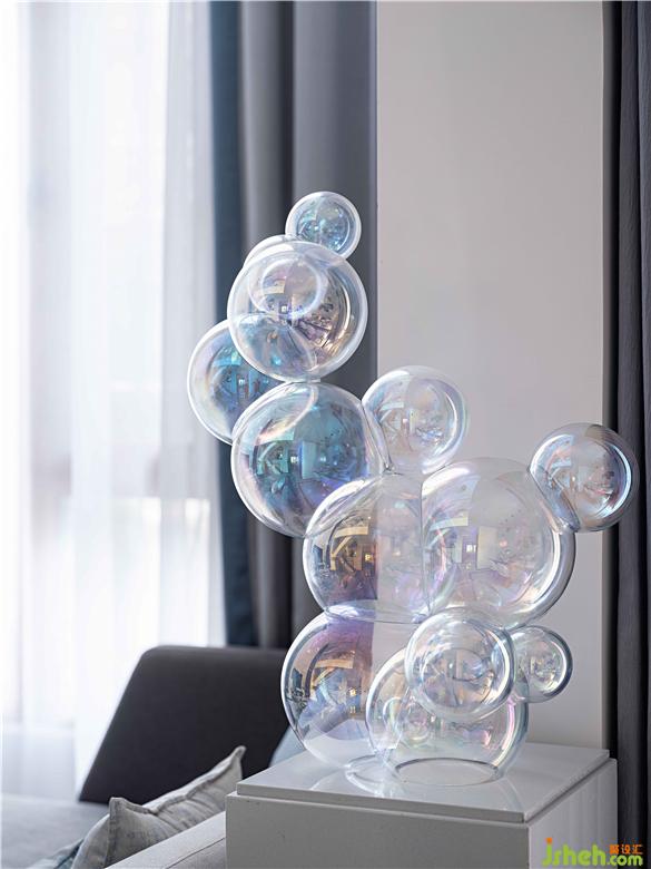 精致的高級灰、清新的藍(lán),搭配手工金屬擺件,透明質(zhì)感的材質(zhì),變化的光線,氤氳一個輕盈、靈動的現(xiàn)代美學(xué)空間。