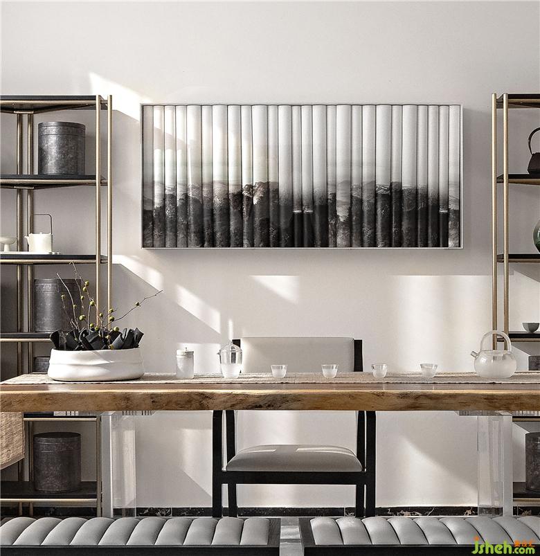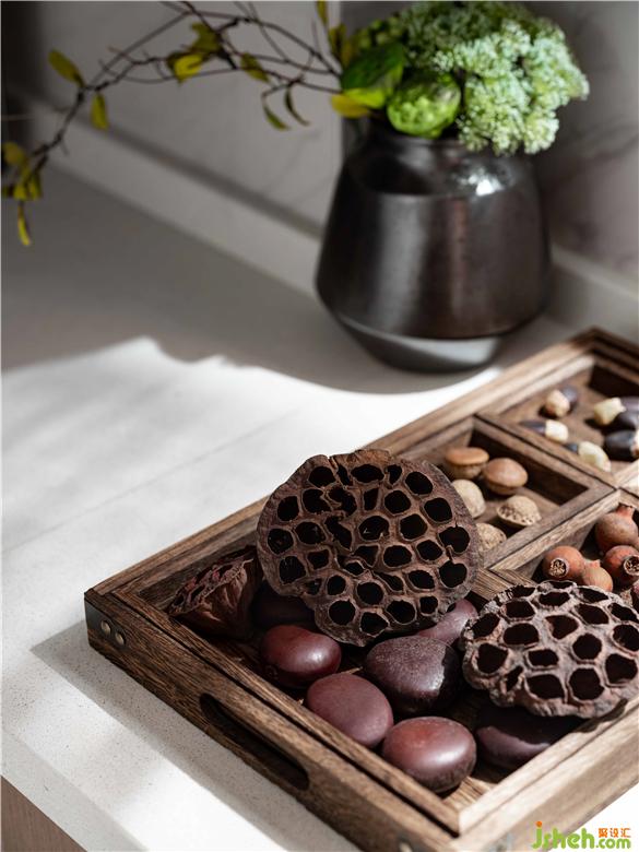山水的紋理,端莊的色彩,石頭、翡翠等能量元素,空間的氣韻默然流通,透明恬靜而詩情畫意。