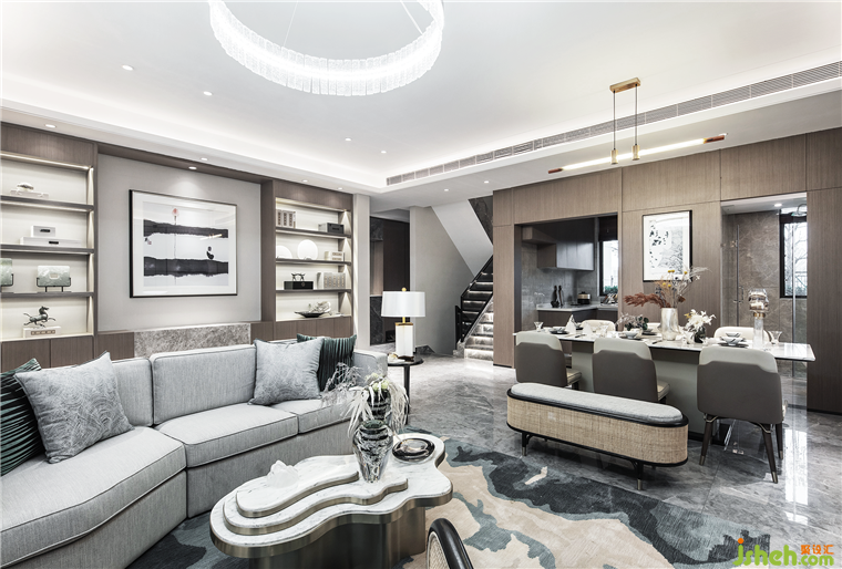 這是一個(gè)下層疊墅樣板房,室內(nèi)設(shè)計(jì)以情感依托為內(nèi)核,將閑適、文雅的意境外化為空間語言,遠(yuǎn)離浮躁和不安,進(jìn)入一種平和、舒緩而慢節(jié)奏的生活模式。