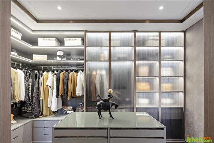 衣帽間的霧面玻璃,仿如微風輕輕拂過的水面后,蕩起的粼粼水波,發(fā)出微微的嘩嘩作響,將動人、精致美好的生活方式融入新一代的城市人居。