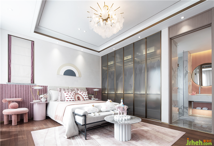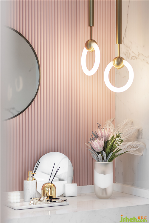 女兒房里粉色與鏡面玻璃混搭,冷與暖的強烈對比,空間呈現(xiàn)雙重感官。設計師希望能從當?shù)卮嬖诘拿篮卯斨校谌胍环N新的可能,重新解構傳統(tǒng)與現(xiàn)代之間的距離,創(chuàng)造出新式的美。