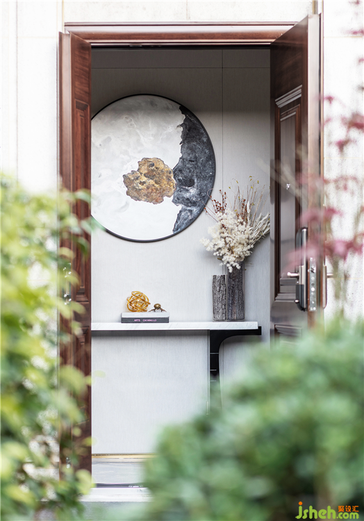 入戶花園以“和光同塵”的哲學思想作為設計語言,以低調(diào)、克制的技藝與純粹的自由意境,讓別墅設計與周遭花草樹木等自然景觀的連接自然而然,通過“融合、與共”的設計手法建構延續(xù)不斷的統(tǒng)一性與玄同性。