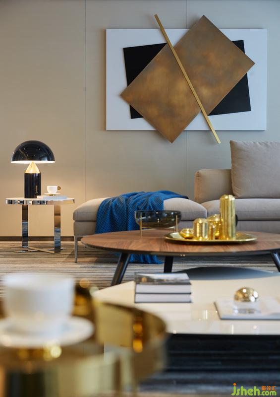 客廳作為空間樞紐區(qū)域,其橫軸動線貫穿玄關(guān)、餐廳、廚房,形成一種流動之美。金屬元素分割的吊頂與地毯呼應(yīng),構(gòu)筑T型視覺張力,配以落地窗采集充足陽光,最大化延伸入戶視線。畫飾擺件以輕松姿態(tài),綻放優(yōu)雅。真火壁爐融入客廳,火焰升燃,家的氣息也匯聚于此。