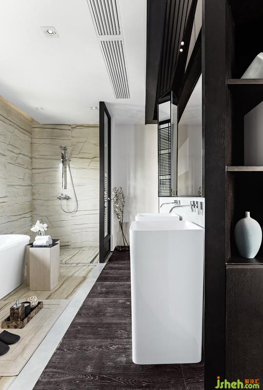 浴室以呼應(yīng)主臥的方式,通透且簡(jiǎn)約。衣帽間功能分區(qū)完備,內(nèi)斂且精致。淡然質(zhì)樸的裝飾,又能讓人放松心靈,這一切有效提升使用體驗(yàn)感。