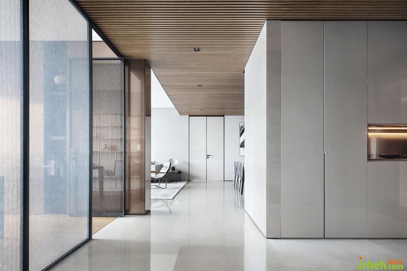 以客餐廳為中心,中軸動(dòng)線(xiàn)串聯(lián)各功能區(qū)域,主次關(guān)系配合得當(dāng)。頂面胡桃木格柵與大理石的銜接收邊、以及墻面金屬勾縫,則印證對(duì)設(shè)計(jì)細(xì)節(jié)的出色把控。
