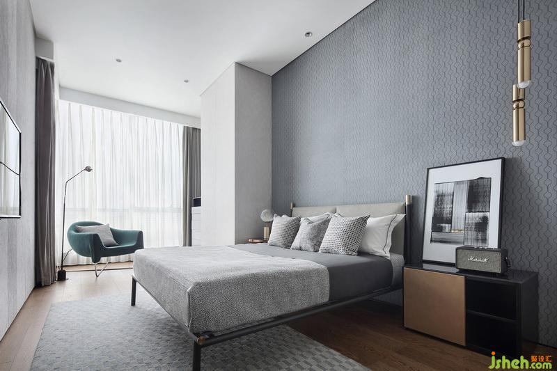 次臥套間延續(xù)灰色基調(diào),在簡(jiǎn)潔舒適中營(yíng)造出安靜愜意的環(huán)境。其衣帽間與衛(wèi)浴空間,明快洗練的風(fēng)格在外,功能性實(shí)用性兼顧在內(nèi)。