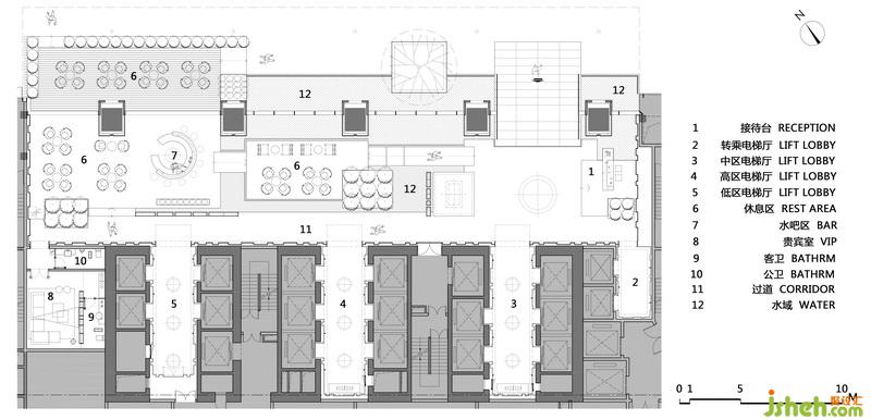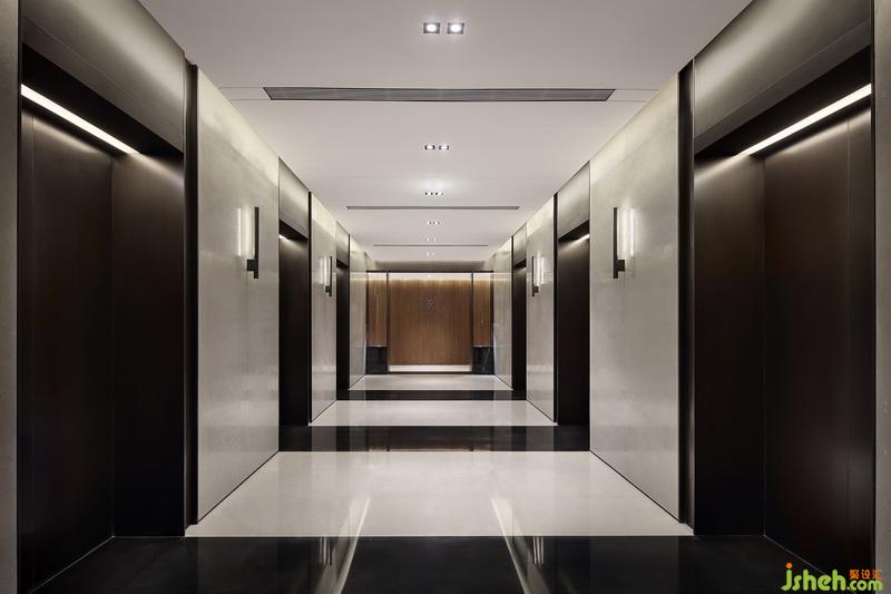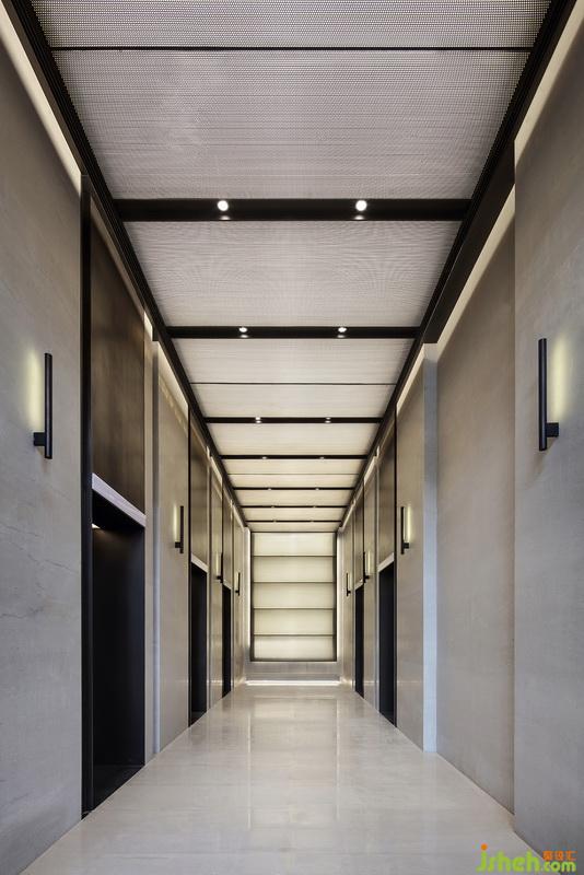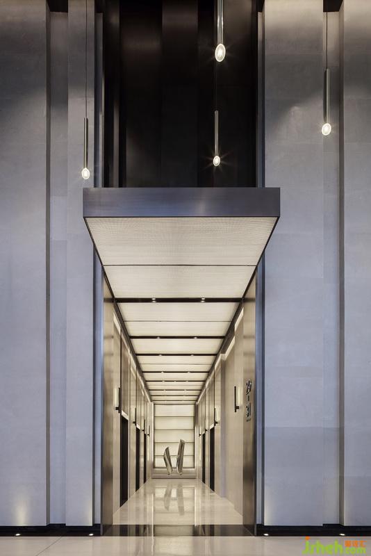 電梯間延續(xù)建筑飛翹而出的檐口形式,以大小不一的分割打造序列感,產生內外部順暢過渡以及心理情感上的呼應。