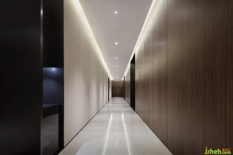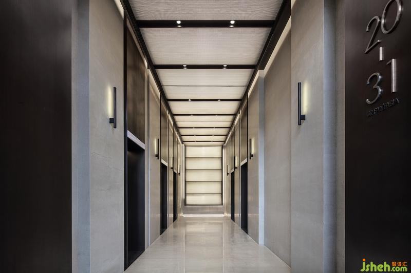 抵達39樓,電梯間同樣極具視覺延伸性,同時又飽含節(jié)奏與儀式感。過道借助不同材質的妥貼聯(lián)合,凝聚出安靜沉穩(wěn)的力量。循此深入,VIP接待中心以及H、G、N三戶型樣板間正分布于此。