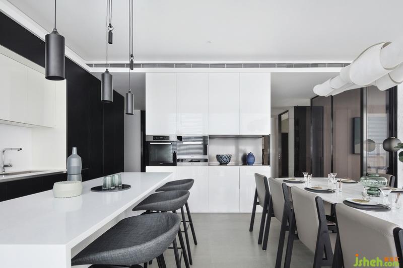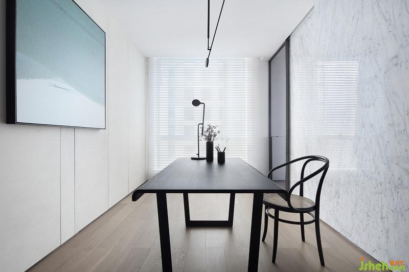 室內(nèi)設(shè)計師提取烤漆材質(zhì)的黑白色反差,從材料、細部和營造方式上窺見輕巧風范。