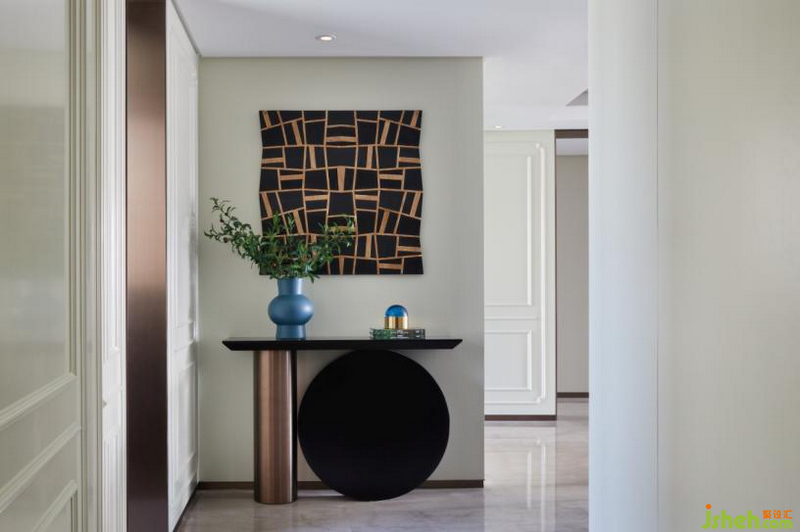 轉(zhuǎn)角,是整個空間故事的開場白,在這里,富有裝飾性的畫作與典雅藍,留下定格的瞬間。