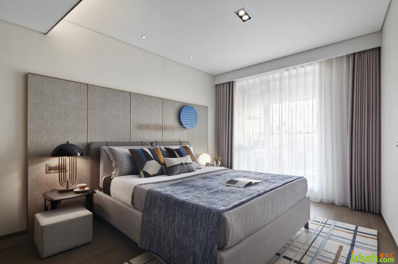 次臥演繹出高級灰氛圍,陽光灑入,塑造出通透利落的空間體驗。在視覺構成上,既有高低錯落、韻律分割的呼應,又有亮麗跳色、矩形與圓弧的感官調(diào)和。
