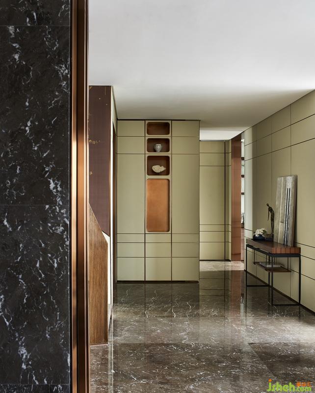 憑借對高端豪宅的深刻洞察以及駕輕就熟的操刀經(jīng)驗(yàn),設(shè)計(jì)師方磊以抽象現(xiàn)代的視覺符號探索原法租界的別樣生機(jī),“通過對地理位置的考察,將建筑與環(huán)境的共生特性融入到材質(zhì)的變化中,尋求一種對撞與平衡之法,盡展繁華都市風(fēng)貌?!狈嚼谌绱烁攀銎湓O(shè)計(jì)宗旨。