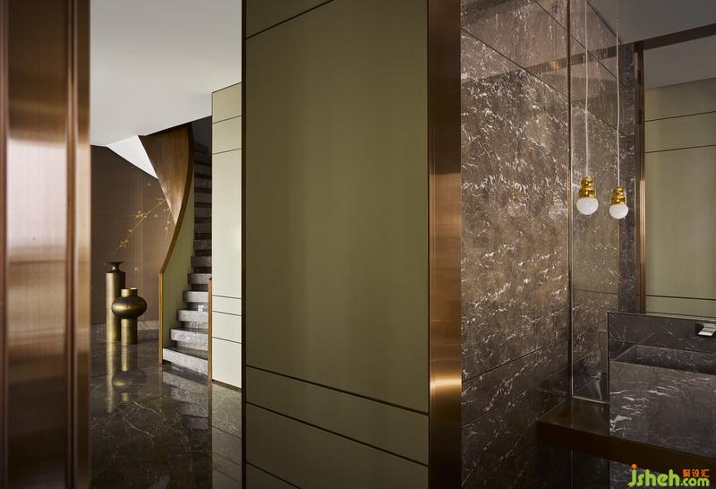 主要材料| 拿鐵灰石材、珍妮灰石材、古銅、黑胡桃木、珍珠魚皮、壁布