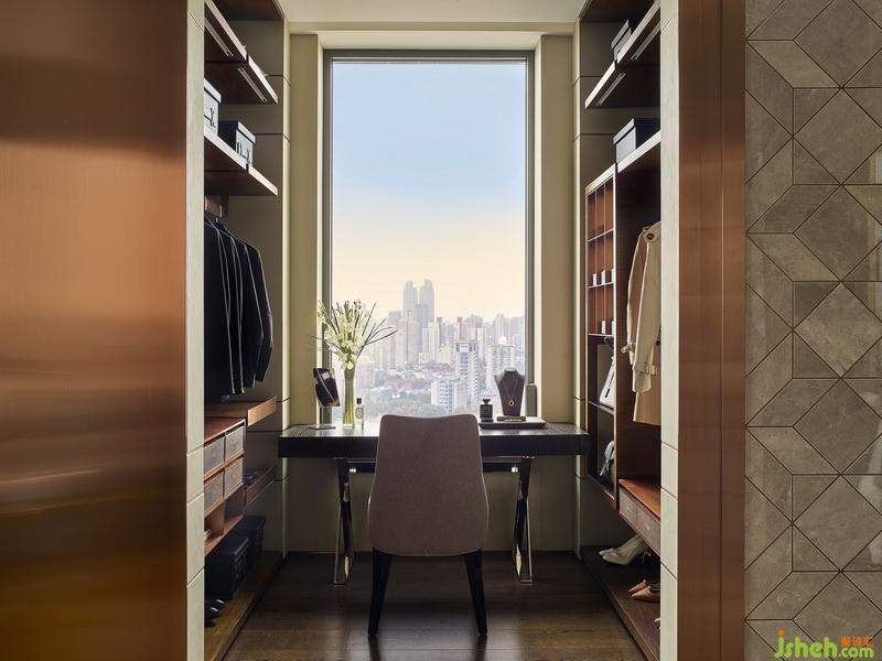 步入主臥套間,便可一覽城市天際線,兩側(cè)開敞式衣帽間,以虛實錯落的自由姿態(tài),實現(xiàn)合理分格且各異其趣,對至高品位的追求正顯露于此。