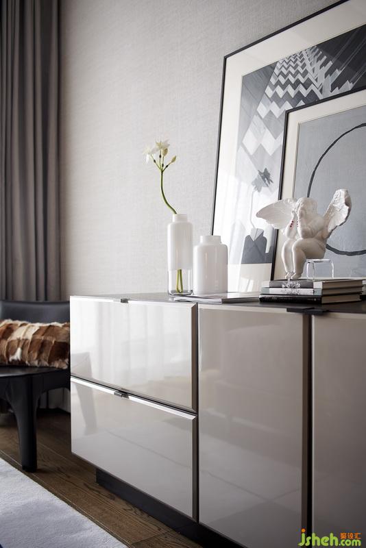 次臥在淡雅的灰色調(diào)中釋放活力,透過一角的裝飾畫與擺件陳列,高低錯落的秩序間盡顯藝術(shù)氛圍。